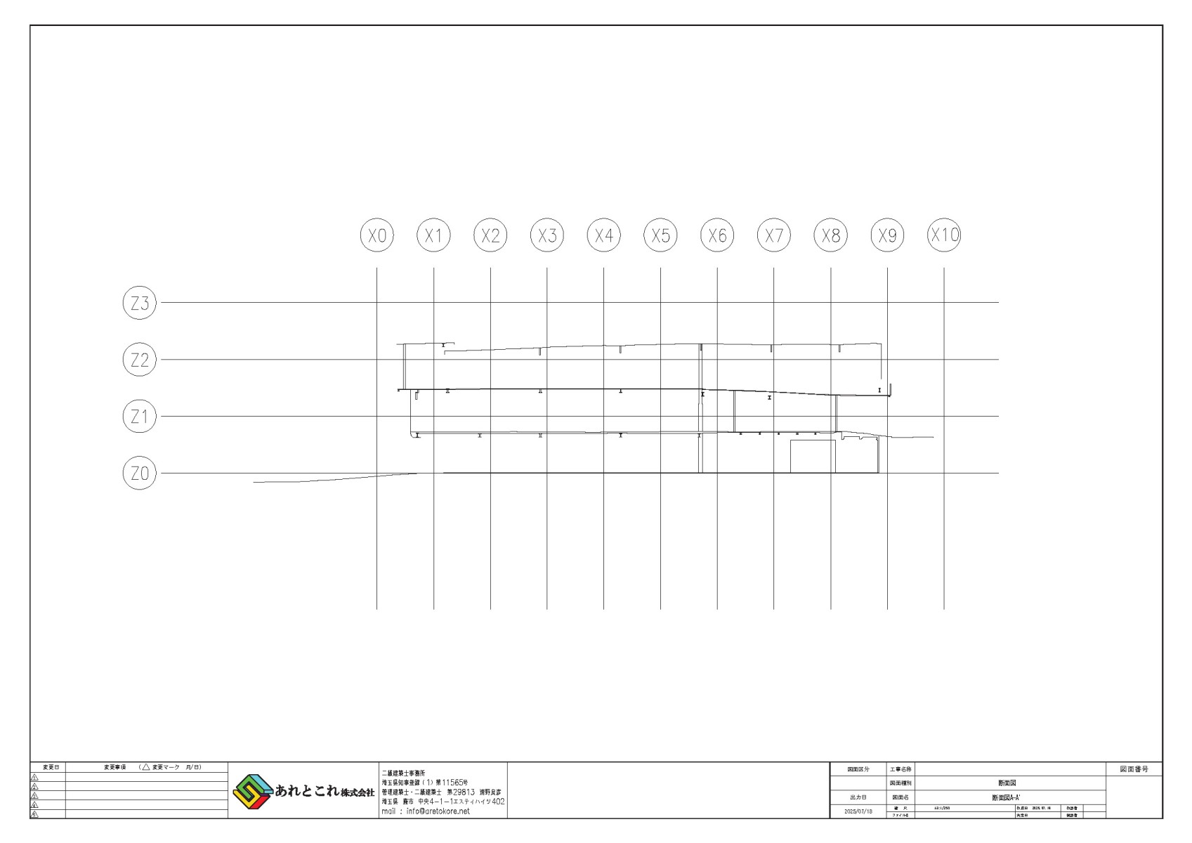 ・点群データから任意の箇所で、奥行150㎜ほどの断面を抽出し、トレースしました。